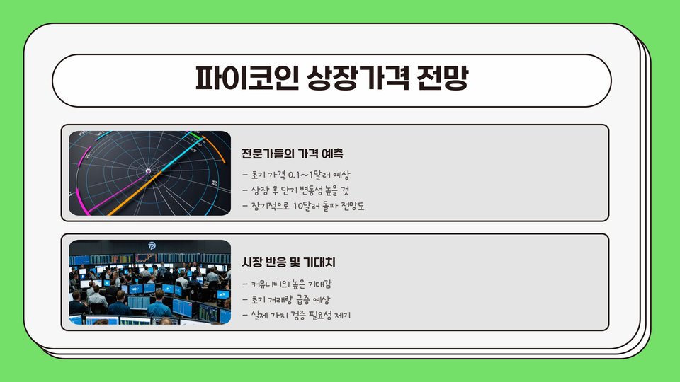 파이코인의 상장 가격은 앞으로의 시장 동향에 따라 다양한 변화가 예상됩니다. 특히, 블록체인 기술의 발전과 더불어 파이코인의 활용도가 높아질 가능성이 크기 때문에, 이는 가격 상승의 주요 원동력이 될 수 있습니다. 이와 동시에, 특정 경제ㆍ사회적 요인 또한 가격에 많은 영향을 미칠 것입니다.