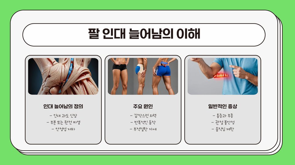- 팔 인대 파열은 과도한 사용이나 외부 충격으로 발생.