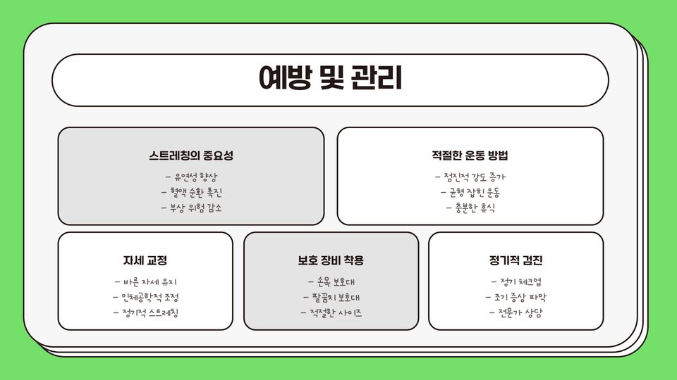 - 정기적인 스트레칭과 운동 실천